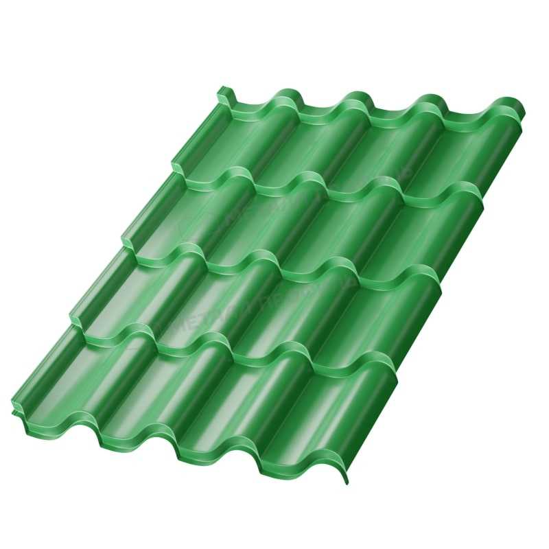 Металлочерепица в зеленом оттенке RAL 6002 представляет собой надежный кровельный материал с толщиной 0,5 мм. Она сочетает эстетику классической черепицы с прочностью металла, обеспечивая долговечность и защиту от внешних воздействий. Идеально подходит для жилых и коммерческих объектов, где важны стиль и функциональность.