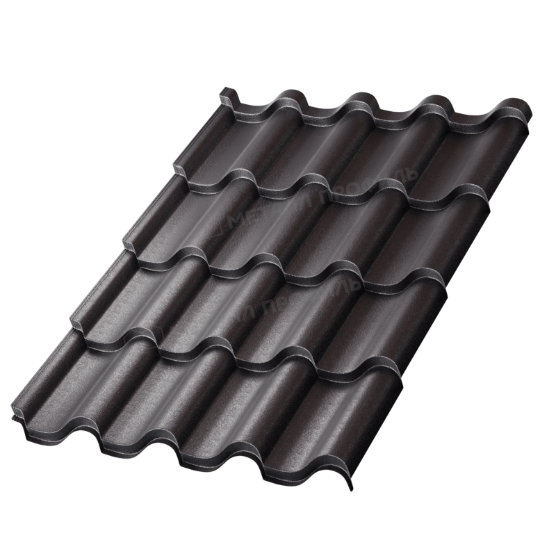 Темный черный цвет RAL 9005 добавляет элегантности, гармонично сочетаясь с любыми фасадами. Матовая поверхность минимизирует блики, создавая уютный вид крыши.