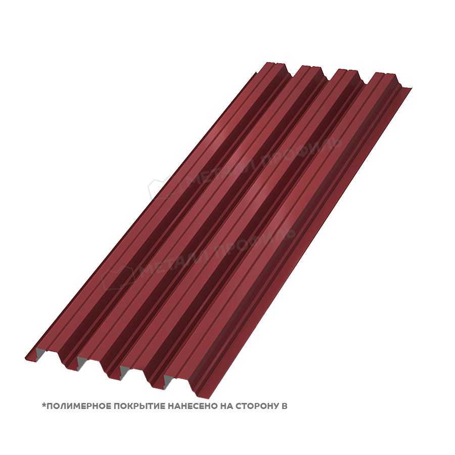 Уникальной особенностью является специальная форма волны, которая усиливает жесткость без увеличения веса. Покрытие полиэстер в оттенке RAL 3011 обладает повышенной устойчивостью к царапинам благодаря добавкам в составе. Материал адаптирован для регионов с переменным климатом, выдерживая температуры от -50 до +80°C. Легкость резки и гибки упрощает подгонку на объекте. Кроме того, он совместим с различными крепежами, обеспечивая надежную фиксацию без деформаций.